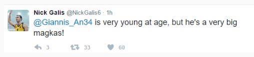 Ο Νίκος Γκάλης απάντησε στα συγχαρητήρια του Γιάννη Αντετοκούνμπο χαρακτηρίζοντάς τον στα αγγλικά… μεγάλο μάγκα.