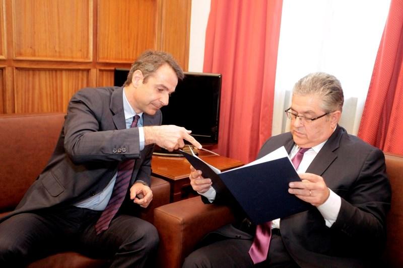 Προσερχόμενος στα γραφεία της ΚΟ του ΚΚΕ, ο Κυριάκος Μητσοτάκης, έδωσε στον Δημήτρη Κουτσούμπα ένα έγγραφο από το αρχείο του Κωνσταντίνου Μητσοτάκη το οποίο αφορούσε τη συμφωνία μεταξύ του ΕΑΜ και της Εθνικής Οργάνωσης Κρήτης η οποία υπεγράφη στις 7 Νοεμβρίου 1943.