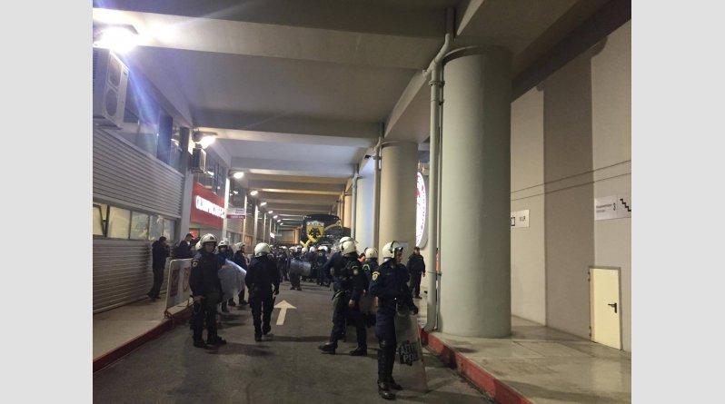 Μάλιστα η ένταση τους ήταν μεγάλη όταν έγινε γνωστή η καταγγελία του Ολυμπιακού. Τότε έγινε επίθεση με καπνογόνα και κροτίδες έξω από τα αποδυτήρια αλλά έξω από τα δημοσιογραφικά με τους αστυνομικούς να απαντούν με δακρυγόνα.