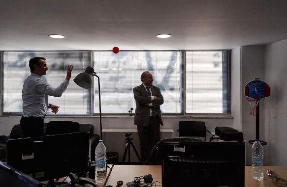 Σε φωτογραφία που ανήρτησε στη σελίδα του στο Instaram, ο πρόεδρος της ΝΔ παίζει με μια μπαλίτσα, προσπαθώντας να βάλει καλάθι σε μια μικρή μπασκέτα στο γραφείο του.