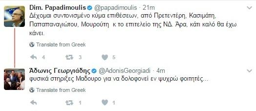 Απίστευτος διάλογος Παπαδημούλη-Γεωργιάδη στο Twitter: «Δέχομαι επιθέσεις»-«Στήριξες Μαδούρο»