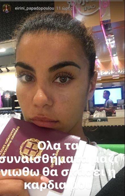 Η πρώην παίκτρια των «διασήμων» ανέβασε στο Instagram μια φωτογραφία από το αεροδρόμιο, γράφοντας: «Όλα τα συναισθήματα μαζί. Νιώθω ότι θα σπάσει η καρδιά» ενώ κρατούσε στο χέρι της το διαβατήριό της.