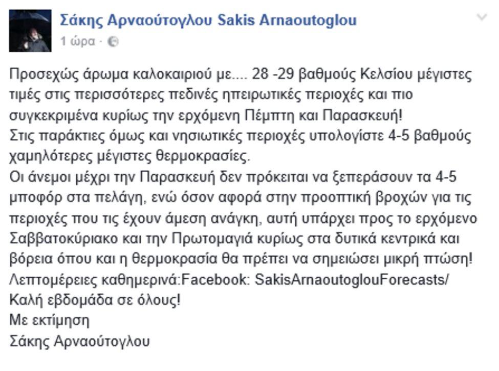 Τώρα με νέα πρόβλεψη στη σελίδα του στο Facebook προειδοποιεί για …30άρια.