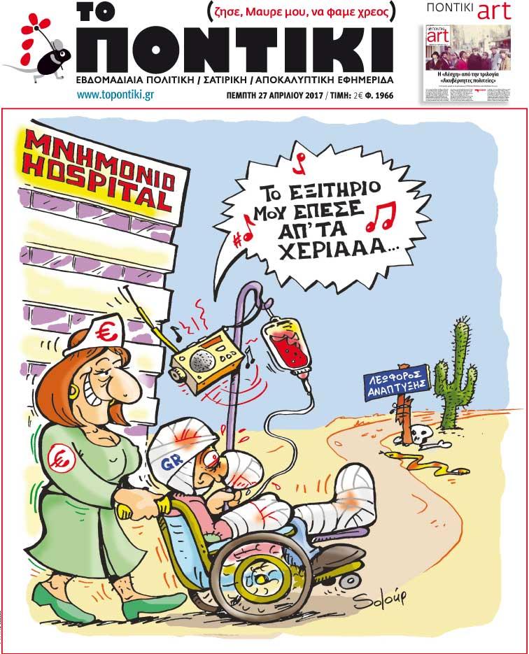 Με πρωτοσέλιδο σκίτσο «Το εξιτήριο μου έπεσε απ’ τα χέρια» και αναλυτικό – αποκαλυπτικό ρεπορτάζ για τη διαπραγμάτευση και την πορεία προς την ανάπτυξη.