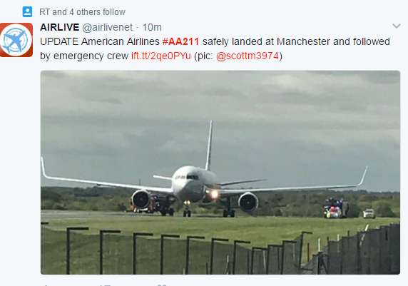 Προσγειώθηκε με ασφάλεια η πτήση της American Airlines στο αεροδρόμιο του Μάνστερστερ.