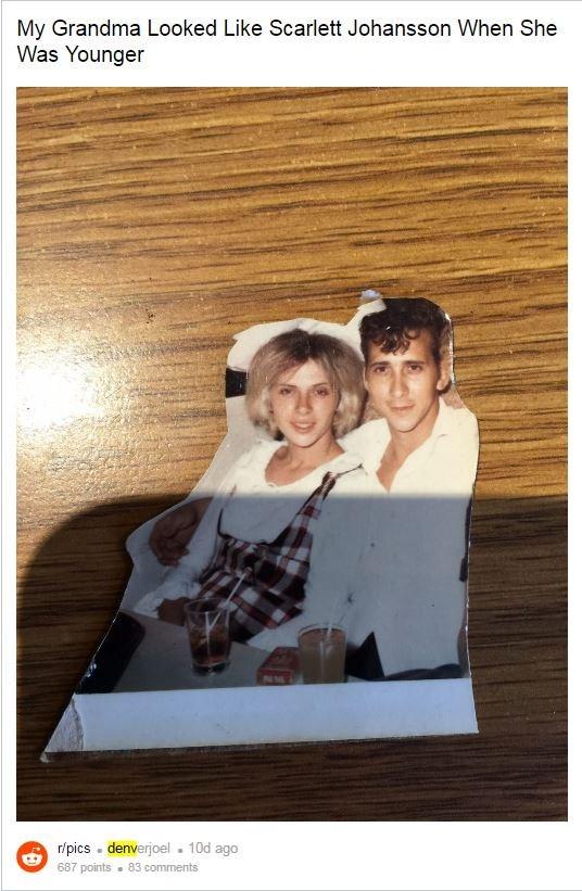 Πρόκειται, λοιπόν, για άλλη γυναίκα, που στα νιάτα της έμοιαζε καταπληκτικά με τη διάσημη ηθοποιό. Τη φωτογραφία ανέβασε στο Reddit ο χρήστης Denverjoel, ο οποίος είναι ο εγγονός της «Grandma Geraldine», που τότε ήταν 22 χρονών, και αναστάτωσε τους χρήστες τους διαδικτύου.