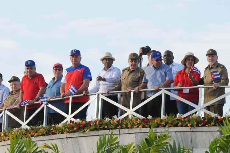 Ο Κάστρο, φορώντας στρατιωτική στολή, παραβρέθηκε σε μια συγκέντρωση μισού εκατομμυρίου ανθρώπων στην Αβάνα, όπου υπήρχαν παντού πορτρέτα και πλακάτ στη μνήμη του αδελφού του Φιντέλ, ο οποίος πέθανε τον περασμένο Νοέμβριο. Μεγάλες παρελάσεις πραγματοποιήθηκαν σε όλη τη χώρα.