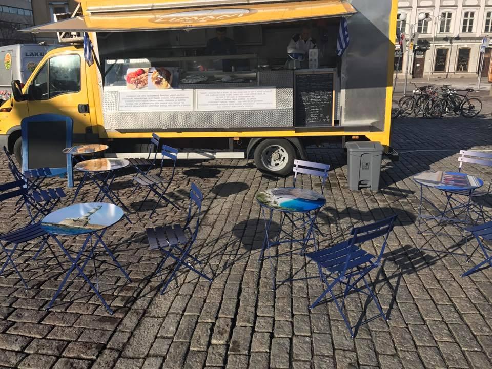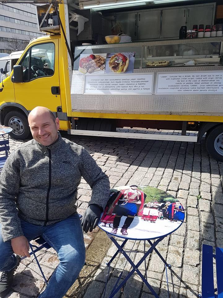 Στην κεντρική αγορά του Τούρκου, στην Φινλανδία, λειτουργεί από χθες μια επιχείρηση γεμάτη από Χανιά. Πρόκειται για την τροχήλατη ταβέρνα του Χανιώτη Μιχάλη Λακιωτάκη, ένα όνειρο ζωής που επιτέλους πραγματοποιεί, όπως λέει ο ίδιος. Όπως βλέπετε, στο πίσω μέρος της ταβέρνας, απεικονίζεται το λιμάνι των Χανίων.