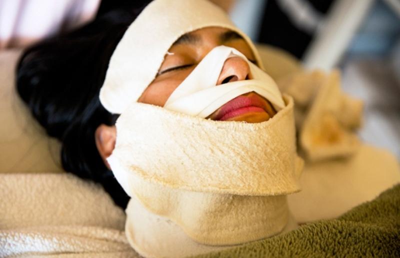 Στη συνέχεια η δερματολόγος βάζει χειρουργικό βαμβάκι στο πρόσωπο, το οποίο το έχει βουτήξει σε διάλυμα ρίζας yucca. Ακολούθως, ολόκληρο το πρόσωπο (που πλέον μοιάζει με ένα πρόσωπο… μούμιας από το βαμβάκι που το καλύπτει) καλύπτεται από μία δερμάτινη μάσκα από την οποία διέρχονται ηλεκτρόδια και καλώδια. Αυτή η μάσκα θερμαίνει το πρόσωπο ελαφρά και βοηθάει τα υλικά που έχουν ποτίσει το βαμβάκι να περάσουν βαθιά στην επιδερμίδα, σε μια διαδικασία που διαρκεί 10 λεπτά.