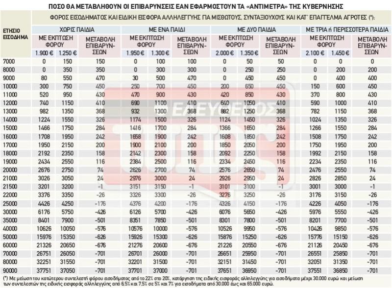 Συγκεκριμένα σε περίπτωση κατά την οποία ταυτόχρονα με την μείωση της έκπτωσης φόρου των 1.900 – 2.100 ευρώ στα επίπεδα των 1.250 – 1.450 ευρώ εφαρμοστούν και τα φορολογικά «αντίμετρα» που έχουν συμφωνηθεί με τους δανειστές, τότε όσοι μισθωτοί, συνταξιούχοι και κατ’ επάγγελμα αγρότες εμφανίζουν εισοδήματα μεγαλύτερα των 21.500 ευρώ θα ωφεληθούν με φοροελαφρύνσεις από 26 έως και 701 ευρώ.
