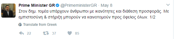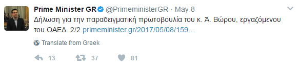 Η πρωτοβουλία του κ.Βώρου εντυπωσίασε και τον πρωθυπουργό Αλέξη Τσίπρα ο οποίος δήλωσε: