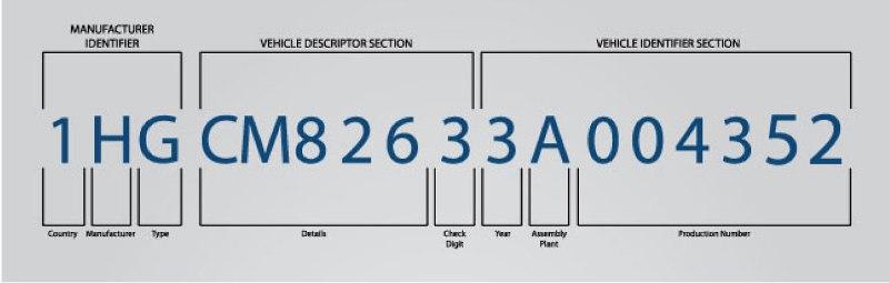 Ειδικότερα ο αριθμός πλαισίου περιλαμβάνει την χώρα και το εργοστάσιο παραγωγής του αυτοκινήτου, τον τύπο αμαξώματος, τον κυβισμό αλλά και το καύσιμο του κινητήρα, τον αύξοντα αριθμό κατασκευής του οχήματος, το έτος παραγωγής, το μοντέλο, το σύστημα πέδησης, το κιβώτιο, κ.ά.