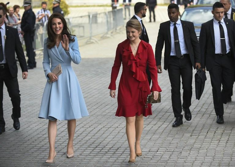 Με ένα παλτό – φόρεμα σε απόχρωση baby blue η Κέιτ ήταν λαμπερή και εντυπωσιακή. Οι αέρινες μπούκλες της σε συνδυασμό με τις nude γόβες της, διαφοροποίησαν μάλιστα το look της από αυτό της Μελάνια που είχε επιλέξει γόβες σε γαλάζιο χρωματισμό και κότσο για τα μαλλιά.