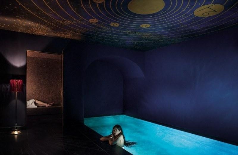 Ανεξάρτητα όμως από την κατηγορία του δωματίου, όλοι οι επισκέπτες θα βρουν στο μπάνιο προϊόντα του οίκου Hermes και μεταξωτά σκεπάσματα στα κρεβάτια, ενώ έχουν τη δυνατότητα να νοικιάσουν το χώρο σπα και της πισίνας για… ιδιωτικές στιγμές κάτω από το… «έναστρο» ταβάνι.