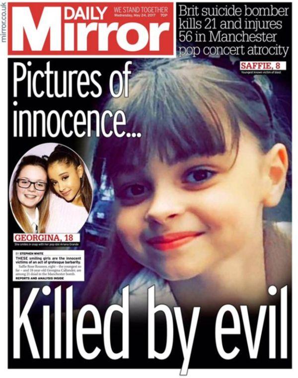 «Η φωτογραφία της αθωότητας που σκοτώθηκε από το κακό», γράφει η Daily Mirror εστιάζοντας στην Σάφι και την Τζορτζίνα Κάλαντερ.