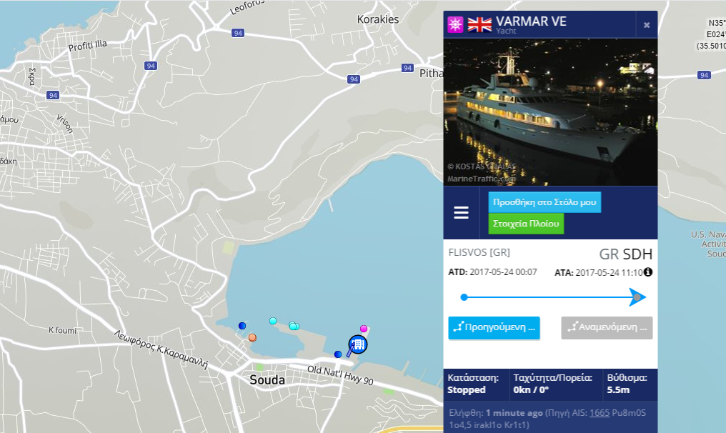 Στον προβλήτα της Σούδας, στα Χανιά, έχει καταπλεύσει από χθες το πρωί η θαλαμηγός «Varmar Ve» του Βαρδή Βαρδινογιάννη.