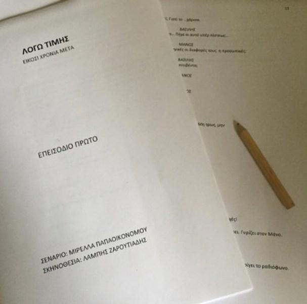 Ο σκηνοθέτης του Λόγω Τιμής, Λάμπης Ζαρουτιάδης, ανέβασε στο προσωπικό του λογαριασμό στο Instagram μία φωτογραφία από το σενάριο του πρώτου επεισοδίου της σειράς, το οποίο έχει ήδη ολοκληρωθεί.