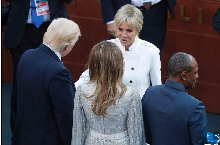 Η 64χρονη Πρώτη Κυρία της Γαλλίας είχε ένα σύντομο διάλογο με την Μελάνια Τραμπ, με την οποία είχε γνωριστεί πριν δύο μέρες στις Βρυξέλλες.