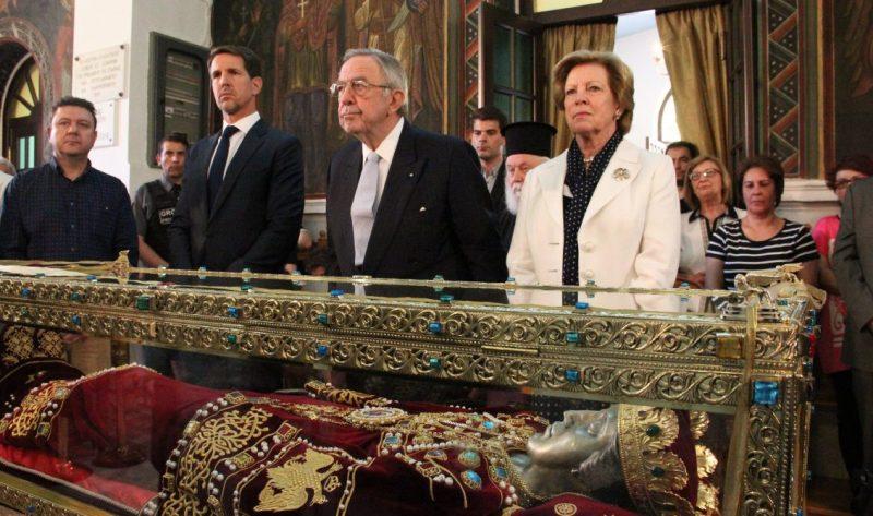 Προσκύνημα στο ιερό λείψανο της Αγίας Ελένης στον ναό της Αγίας Βαρβάρας, στον ομώνυμου Δήμο, πραγματοποίησε ο τέως βασιλιάς Κωνσταντίνος, συνοδευόμενος από την σύζυγό του Άννα- Μαρία και τον γιό τους, Παύλο.