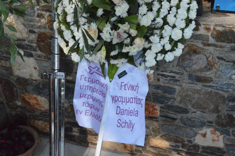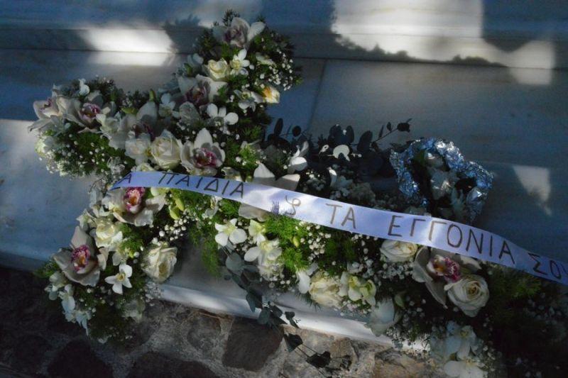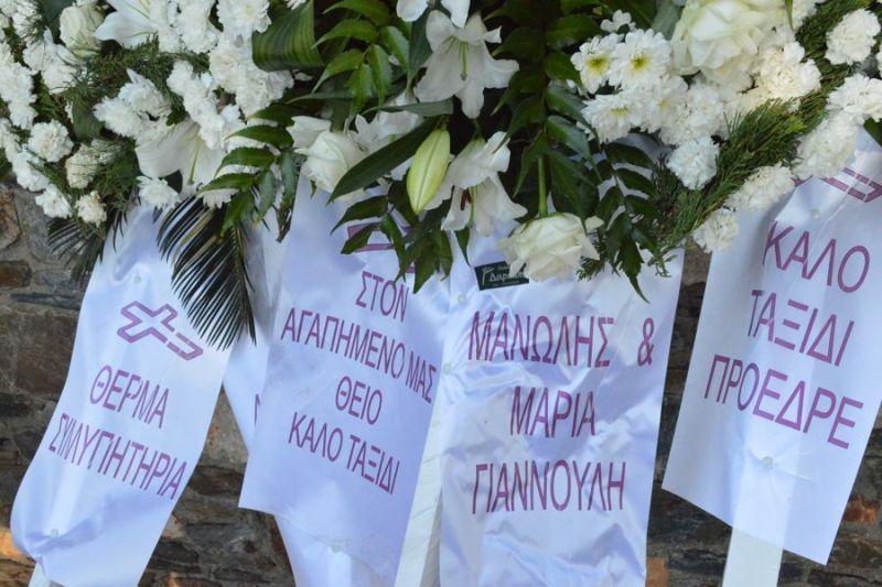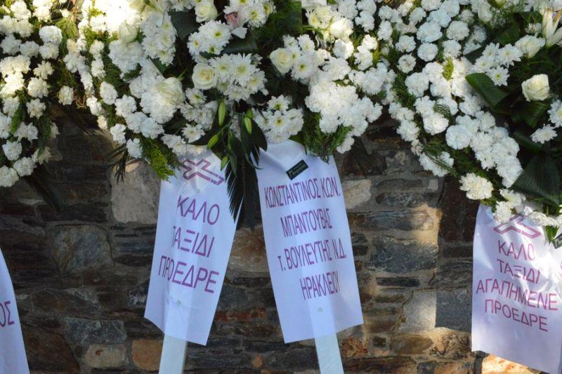 Εκτός του σταυρού από λουλούδια που έφερε την επιγραφή «ΤΑ ΠΑΙΔΙΑ ΚΑΙ ΤΑ ΕΓΓΟΝΙΑ ΣΟΥ» και το στεφάνι από δάφνες του Προέδρου της Δημοκρατίας, όπως φαίνεται και στις φωτογραφίες του zarpanews.gr, στον ταφικό χώρο έφτασαν στεφάνια από διάφορους -γνωστούς και μη- φίλους της οικογένειας.