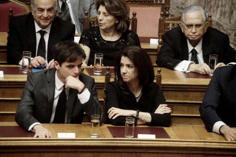 Στα έδρανα της Βουλής ήταν σύσσωμη οι οικογένεια Μητσοτάκη και Μπακογιάννη, με την Αλεξία Μπακογιάννη και τον Κωνσταντίνο Μητσοτάκη, γιο του Κυριάκου Μητσοτάκη, να είναι στα πρώτα καθίσματα στο μνημόσυνο του παππού τους.