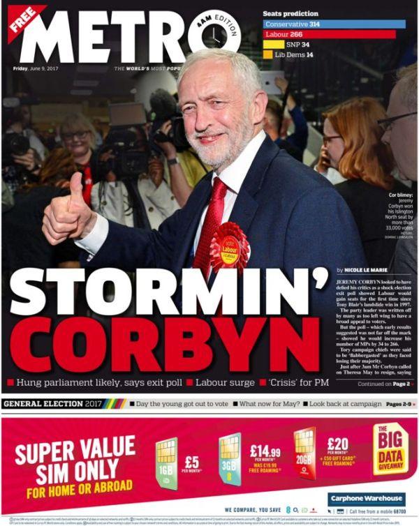 Αρκετά είναι τα πρωτοσέλιδα που αναρωτιούνται αν μετά το αποτέλεσμα των πρόωρων εκλογών θα τεθεί εν αμφιβόλω το Brexit, ενώ δεν λείπουν η αναφορές στη νίκη του Τζέρεμι Κόρμπιν έναντι της Τερέζα Μέι