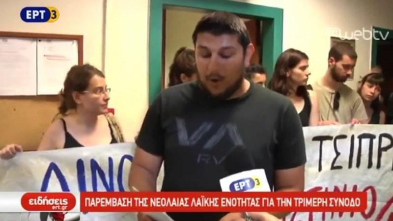 Εισβολή της νεολαίας της ΛΑΕ στην ΕΡΤ3 – Διαμαρτυρία για την τριμερή