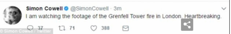 Η πυρκαγιά στο πολυώροφο κτίριο του Λονδίνο συγκλόνισε παγκοσμίως. Πολλοί είναι εκείνοι που εκφράζουν τη θλίψη τους και δηλώνουν τη συμπαράστασή τους στα θύματα και τις οικογένειές τους. Ένας από αυτούς είναι και ο Σάιμον Κάουελ ο οποίος ανακοίνωσε ότι θα προσφέρει όλα τα έσοδα από το νέο του single στα θύματα της πυρκαγιάς του Πύργου Grenfell.