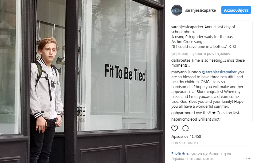 Πριν από μερικές ώρες, πόσταρε μία φωτογραφία του από την τελευταία ημέρα στο σχολείο και ανοιγοκλείσαμε μερικές φορές τα μάτια μας καθώς δεν πιστεύαμε το πόσο πολύ έχει ομορφύνει. Το αγοράκι της μόλις ολοκλήρωσε την 8η τάξη και η SJP ξεχειλίζει από υπερηφάνια.