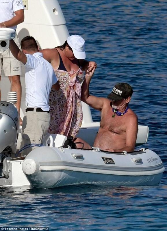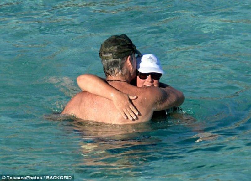 Αφού πέρασαν όμορφες στιγμές στο σκάφος τους, συνέχισαν τις αγκαλιές μέσα στη θάλασσα, ενώ ο ηθοποιός ήταν ιδιαίτερα ευγενικός και προστατευτικός απέναντι στη σύζυγό του.