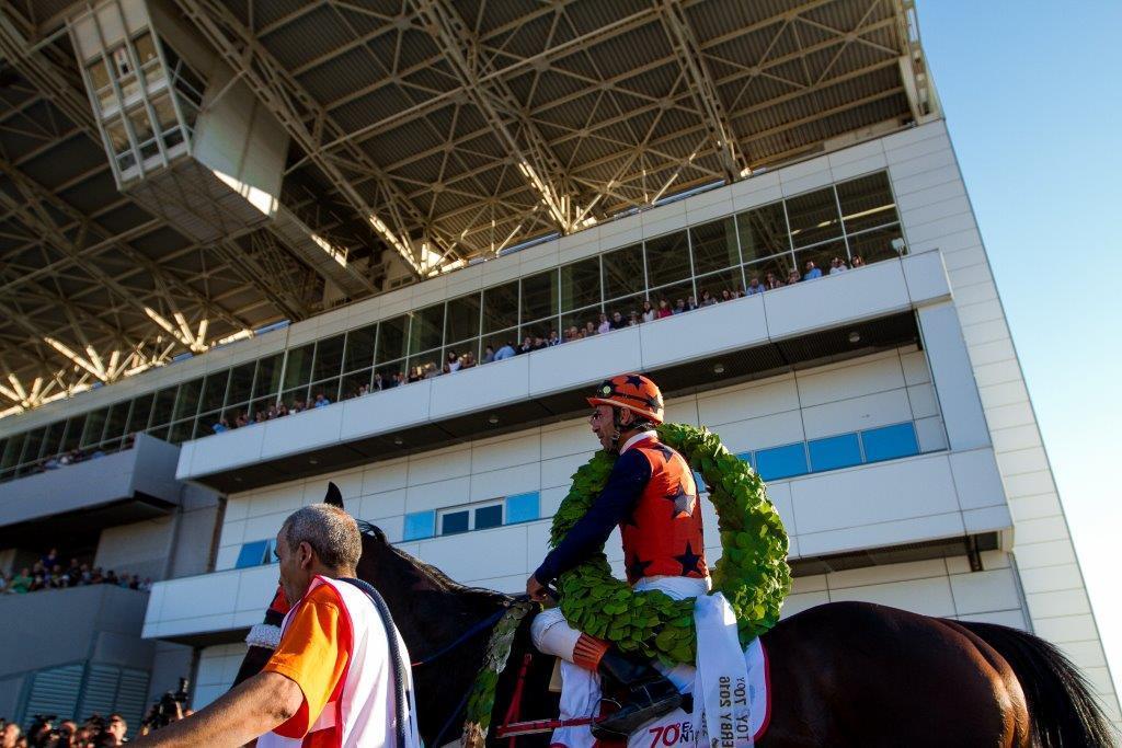 Ο Μιχάλης Ξυνός με τον νικητή ίππο του 70ου Ντέρμπι, Μέντωρ