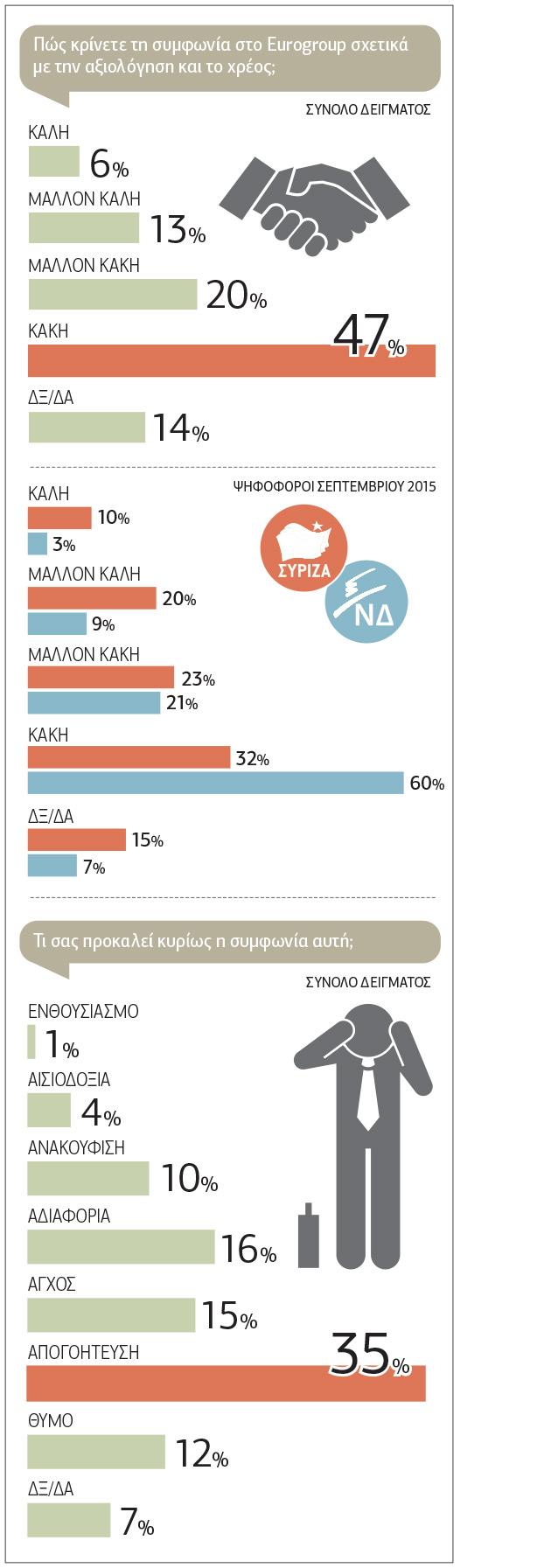 ⇒ πώς αποτιμούν οι ψηφοφόροι κάθε κόμματος την πρόσφατη απόφαση των Βρυξελλών στο τελευταίο Eurogroup.