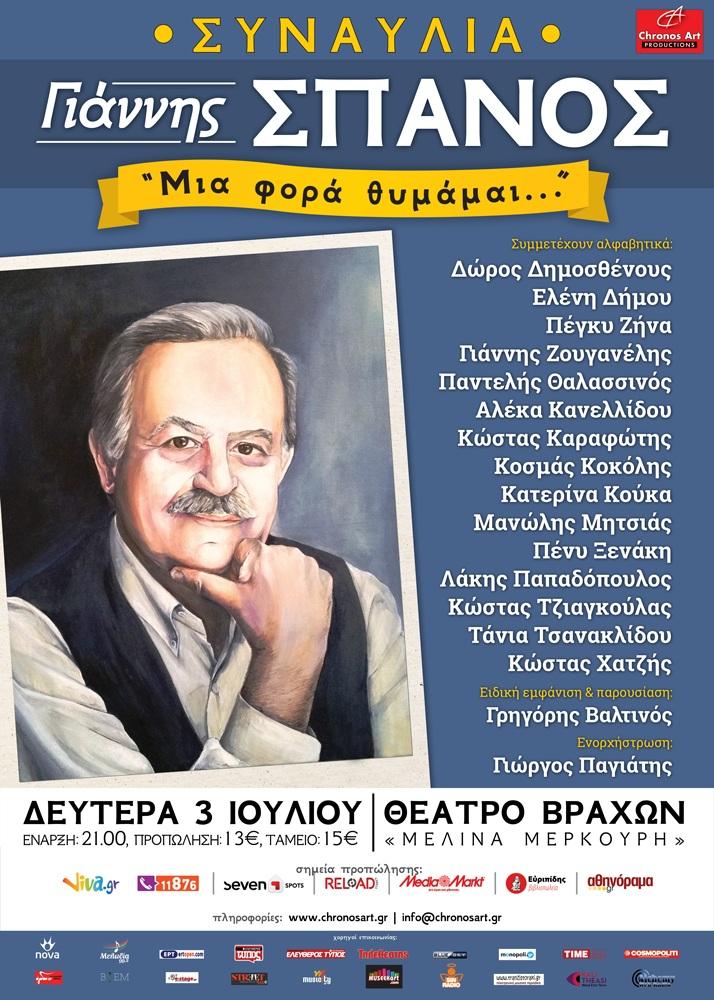 Την Δευτέρα 3 Ιουλίου λοιπόν, στο θέατρο Βράχων «Μελίνα Μερκούρη», ο Γιάννης Σπανός και οι εκλεκτοί του φίλοι