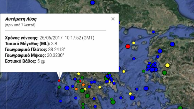 Σεισμός 3,8 της κλίμακας Ρίχτερ σημειώθηκε στις 13:17 της Δευτέρας στην Κεφαλονιά.