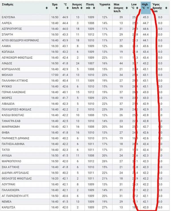 Τις τελευταίες μέρες κάποιοι έσπευσαν να πουν ότι ήταν υπερβολικές οι εκτιμήσεις μου για θερμοκρασίες της τάξεως των 44-45°C και ότι δεν θα σημειωθεί θερμοκρασία άνω των 42-43°C.