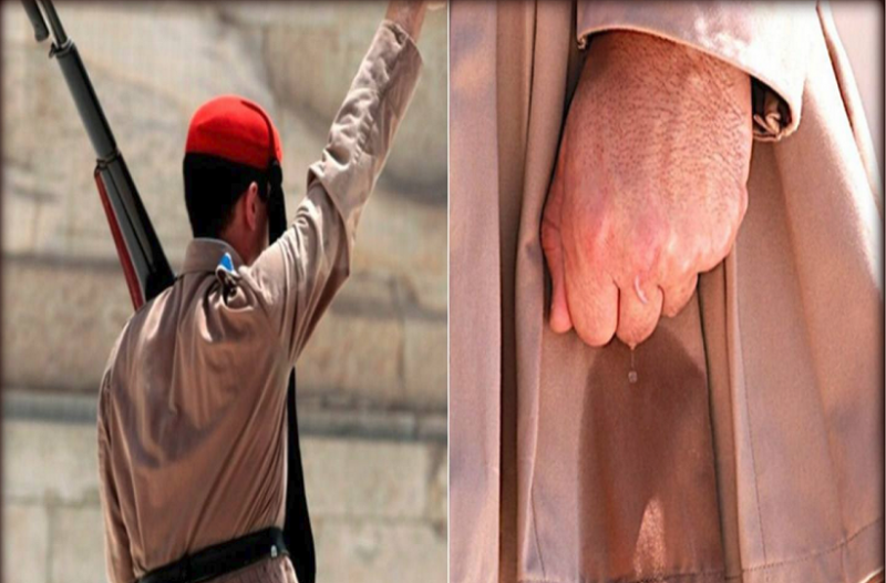 Μπροστά στο άγαλμα του Αγνώστου Στρατιώτη οι τσολιάδες μπορεί να υποφέρουν μέσα στις βαριές στολές τους, κάτω από τον καυτό ήλιο, όμως στέκουν περήφανοι.