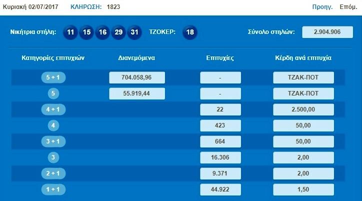 Τζακ ποτ σημειώθηκε στην κλήρωση της Κυριακής στο Τζόκερ.