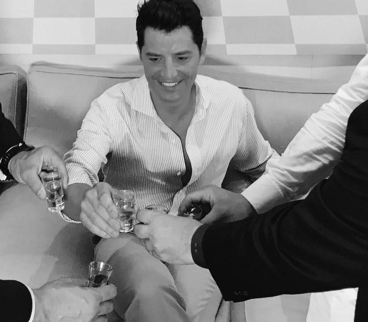 Ο γαμπρός ήπιε μερικά σφηνάκια με τους φίλους του για το καλό της ημέρας, λίγο πριν την τελετή, όπως φαίνεται σε φωτογραφία που ανήρτησε ο ίδιος στο Instagram.