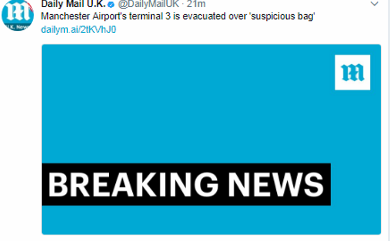 Εκκενώθηκε ο τερματικός σταθμός στο αεροδρόμιο του Μάντσεστερ, καθώς εντοπίστηκε ένα ύποπτο πακέτο, σύμφωνα με όσα ανέφερε εκπρόσωπος του αεροδρομίου.