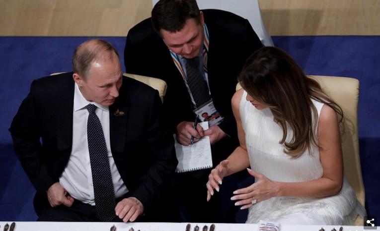 Παρόλο που τόσο η Μελάνια, όσο και ο Πούτιν γνωρίζουν καλά γερμανικά και θα μπορούσαν να συνεννοηθούν, προτίμησαν να έχουν ανάμεσά τους έναν μεταφραστή.