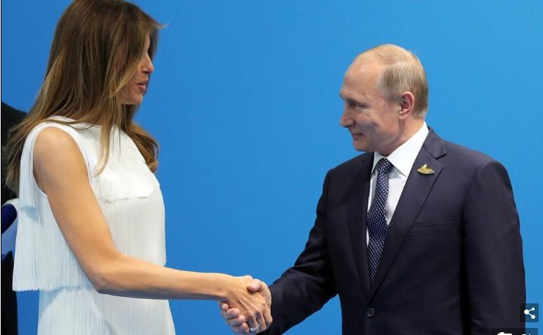 Ντυμένη με ένα λευκό Michael Kors φόρεμα, η Πρώτη Κυρία δεν έδειχνε καθόλου αμήχανη και φαίνεται να γοήτευσε με τα λεγόμενα της τον Βλαντιμίρ Πούτιν, ο οποίος την άκουγε με μεγάλη προσοχή.