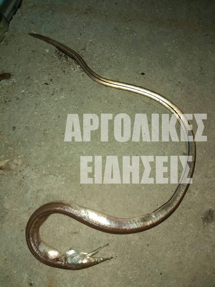 Ένα τεράστιο «ψάρι-φίδι» μήκους 1,5 μέτρων είχε μπλεχτεί στα δίχτυα του ψαρά με αποτέλεσμα να το ανασύρει μαζί με την υπολοιπη ψαριά του.