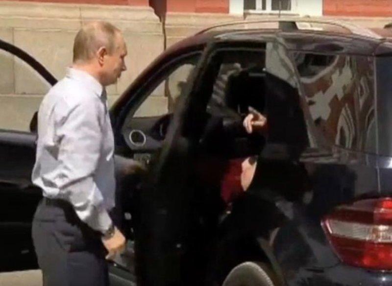 Συγκεκριμένα, ο Ρώσος πρόεδρος βγαίνει από το αυτοκίνητό του και αμέσως μετά ανοίγει την πόρτα σε μια γυναίκα που κάθεται στο πίσω μέρος της προεδρικής Μερσεντές. Πρόκειται για μια γυναίκα ντυμένη στα κόκκινα χωρίς, ωστόσο, να διακρίνονται περισσότερα. Κάποια στιγμή εκείνη του ζητά να κλείσει την πόρτα, με τον Ρώσο πρόεδρο να το κάνει και μάλιστα βιαστικά, σαν να θέλει να κρύψει κάτι…