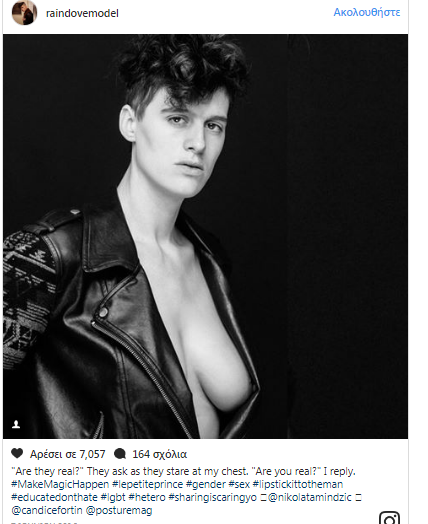 Δεν πρόκειται για κάποια transgender αλλά απλώς, για μια γυναίκα που έχει έντονα αντρικά χαρακτηριστικά. Ο λόγος για την Rain Dove η οποία με θάρρος «αγκάλιασε» τη διαφορετικότητά της και αποφάσισε να την κάνει προτέρημα.