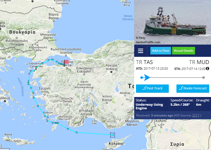Το «Μπαρπαρός», σύμφωνα με πληροφορίες που δίνει η σελίδα marinetraffic.com, απέπλευσε από λιμάνι της νοτιοανατολικής Τουρκίας στις 23:33 το βράδυ της Πέμπτης και έχει δώσει ως προορισμό το λιμάνι της Προύσας στον Μαρμαρά. Το πλοίο βρίσκεται στα ανοικτά της Κύπρου, χωρίς τίποτα να αποκλύει το ενδεχόμενο να κάνει μια «παράκαμψη» στη Μόρφου.