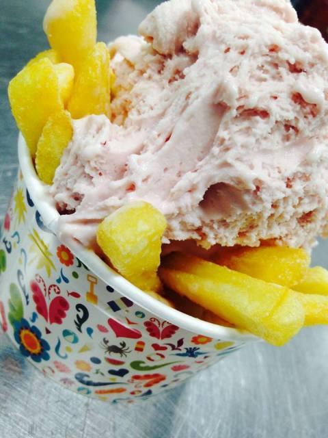 Έτσι, όπως μπορείτε να διαπιστώσετε και από τη φωτογραφία, αποφάσισε να συνδυάσει παγωτό με… τηγανητές πατάτες!