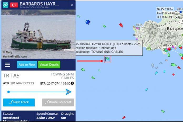 Έριξε ήδη καλώδια στη θάλασσα της κυπριακής ΑΟΖ το Barbaros για να κάνει σεισμικές έρευνες στην περιοχή και την ίδια ώρα ο Τούρκος υπουεργός Εξωτερικών Μεβλούτ Τσαβούσογλου επισκέπτεται τα κατεχόμενα.
