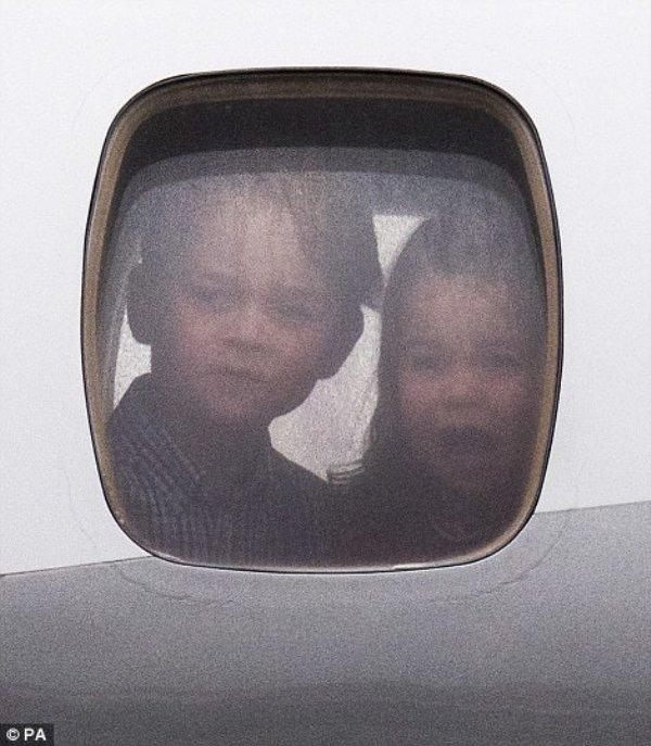 Αυτή τη φορά ο Τζορτζ ήταν λίγο πιο ντροπαλός και κρατούσε από το χέρι τον μπαμπά του, ενώ η Σάρλοτ κατέβητε από το αεροπλάνο στην αγκαλιά της μαμάς της.