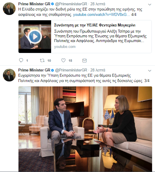 Αναλυτικά οι διαδοχικές αναρτήσεις του πρωθυπουργού στον λογαριασμό του στο Twitter: