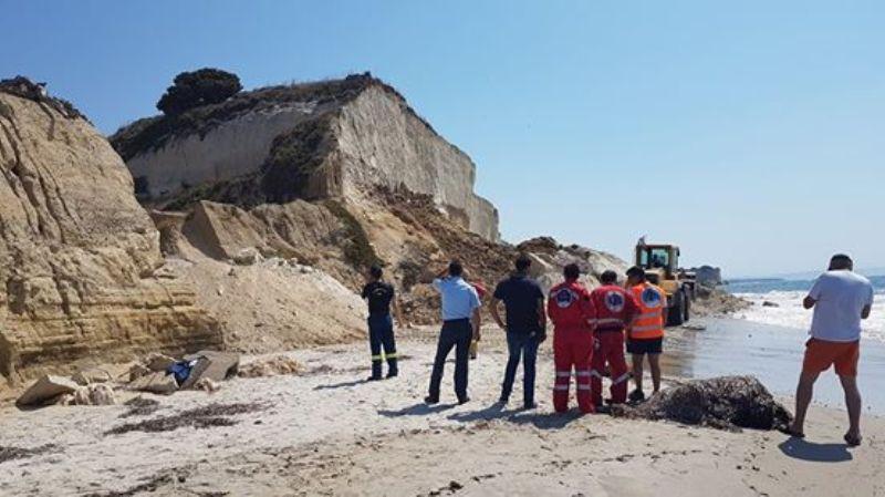 Όπως αναφέρει η ιστοσελίδα aegeanews.gr, μεγάλος όγκος αμμόλοφου αποκολλήθηκε και έπεσε προς την παραλία όπου υπήρχαν λουόμενοι.